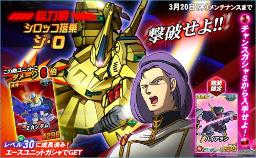 超総力戦には3月20日(木)までの期間限定で「シロッコ搭乗ジ・O」が登場し、期間中に任務を実行するとまれにエンカウントすることがある。