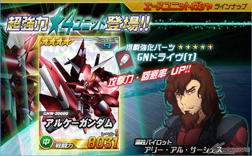 エースユニットガシャに新たに「★4 アルケーガンダム」、「★3 ハンブラビ(MS)」の2機が追加された。「★4 アルケーガンダム」は、強化パーツ「GNドライヴ[T]」を搭載した強力な機体となっている。