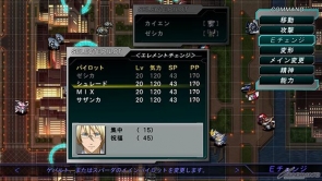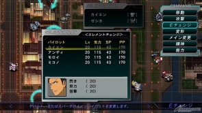 出撃時の3名のエレメントは、EVOLはアマタ、ゲパルトはカイエン、スパーダはゼシカで固定されるが、マップ中の個別コマンド「Eチェンジ」を使用することでゲパルト、スパーダのパイロットを登録されているメンバーから自由に選ぶことができる。