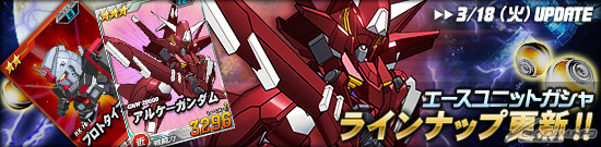 本日のアップデートでエースユニットガシャに「★3 アルケーガンダム」が追加された。