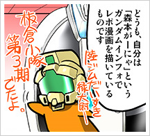 レポートマンガは、当日エキシビションマッチに出場した「ガーニャモリモト」こと森本がーにゃ先生が執筆するもので、ガンダムインフォで連載中のレポートマンガ「SDガンダムいんふぉ」の出張版としてお届けされる。