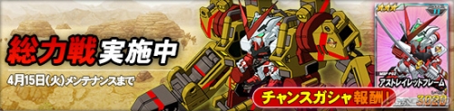 今回の総力戦では「アストレイレッドフレームパワーローダー」が登場し、本日4月1日(火)から4月15日(火)までの期間中に任務を実行すると、まれにエンカウントすることがある。