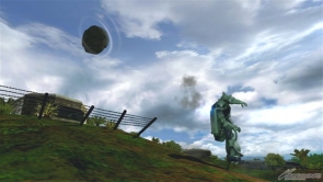 ▲メイン射撃「岩投擲【小】」では、小さい岩を片手で投げる。投げるまでが早いため牽制に役立つ武装だ。