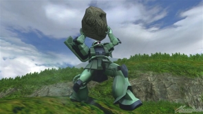 ▲サブ射撃「岩投擲【大】」では大きな岩を両手で投げる。ヒット後に敵機がよろけるため、すかさず追撃していこう。