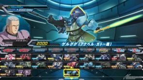 「ソロモンの悪夢」と呼ばれることになる戦いで、ガトーが搭乗していたゲルググ。射撃、格闘ともに使いやすい2000コストの万能機で、弾速と威力に優れたチャージ射撃の対艦用大型ビーム・ライフルや、射撃コンボに使いやすい特殊射撃のビーム・ナギナタ【投擲】を持つ。用途が豊富な射撃武装に加え、格闘攻撃も高性能な物がそろっており、敵機に近寄られてしまった際は格闘攻撃で迎撃することもできる。