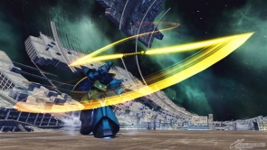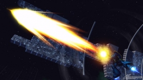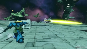 ▲特殊射撃「ビーム・ナギナタ【投擲】」では、投擲したビーム・ナギナタが放物線を描いて飛んでいく。