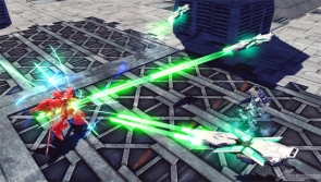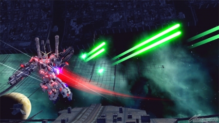 ▲ Special melee fires the Shield Funnel at the enemy. Hold the stick neutral to fire a burst from the Beam Gatling Gun. Holding the stick in any direction will cause the shield to crash into the enemy.