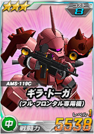 同機を倒した際に引くことができるチャンスガシャSには、「★3 ギラ・ドーガ(フル・フロンタル専用機)」を獲得できるチャンスがあるほか、エースユニットガシャには「フロンタル搭乗 シナンジュ」に対し6倍の攻撃力を発揮する「★2 ユニコーンガンダム(NT-D)」が追加される。