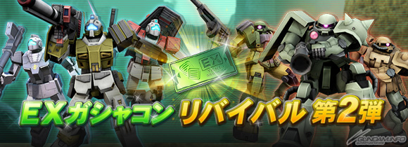 バンダイナムコオンラインより好評サービス中のWindows専用オンラインゲーム「機動戦士ガンダムオンライン」では、本日6月18日(水)より「EXガシャコンリバイバル第2弾」がスタートした。