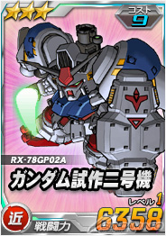 ▲「シャア専用ザクII」に対し6倍の攻撃力を発揮する「★2 ガンダム」