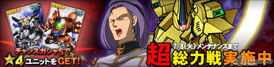 同機を倒した際に引くことができるチャンスガシャSには、「★4 フリーダムガンダム」、「★4 ガンダム試作一号機フルバーニアン」、「★4 百式」、「★4 シャア専用ゲルググ」、「★4 ゲーマルク」などを獲得できるチャンスがあるほか、エースユニットガシャには「シロッコ搭乗ジ・O」に対し、3倍の攻撃力を発揮する「★2 Ζガンダム」が追加される。
