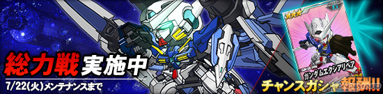 同機を倒した際に引くことができるチャンスガシャには、「★3 ガンダムエクシアリペア」を獲得できるチャンスがあるほか、エースユニットガシャには「GNアーマーTYPE-E」に対し、3倍の攻撃力を発揮する「★2 ジンクス」が追加される。