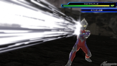 全身のクリスタルを青く輝かせて、根岸拓哉氏の熱い掛け声とともに放つ光線技「ギンガクロスシュート」。