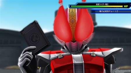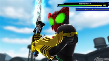 渡部秀氏の熱い掛け声とともに、セルメダルを3枚使ってメダジャリバーから放つ「オーズバッシュ」は、敵を一刀両断する威力を持つ!