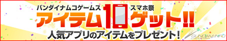 ■「バンダイナムコゲームス スマホ祭 アイテム10ゲット!」キャンペーン
