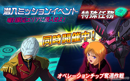さらに、エースユニットガシャには「★3 リグ・コンティオ」と「★3 リグ・シャッコー」、プラチナパイロットガシャには「★3 クロノクル・アシャー」と「★3 カテジナ・ルース」が追加されたほか、特殊任務「オペレーションチップ奪還作戦」と「潜入ミッションイベント」が同時にスタートした。