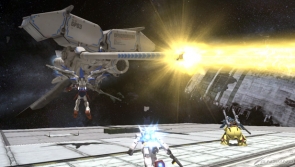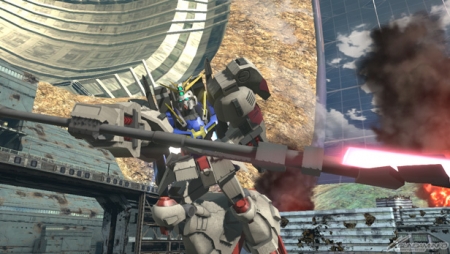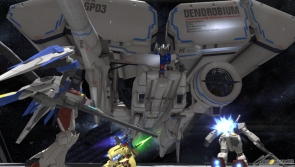 敵機として登場する巨大ガンプラ「デンドロビウム」は、戦艦級のメガ・ビーム砲や大型の収束ミサイル、ビーム・サーベルなど強力な武器を持ち、プレイヤーが立つ地面をも破壊するなどダイナミックなバトルを展開する。
