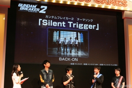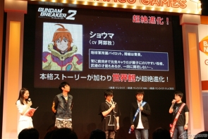 まずは「ガンダムブレイカー2」の最新PVが上映され、本作のテーマソングが「BACK-ON」が歌う「Silent Trigger」となることや、本作には実に100機以上のガンプラが参戦することが発表。さらに、今回初めてゲーム中で本格ストーリーが描かれ、オリジナルキャラクターとして、今回のステージのゲストである小西氏と阿部氏が演じるキャラクターが登場することも明らかにされた。