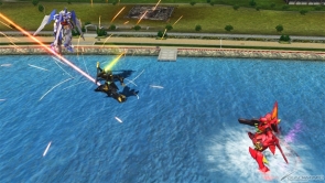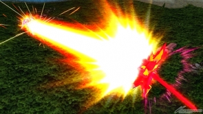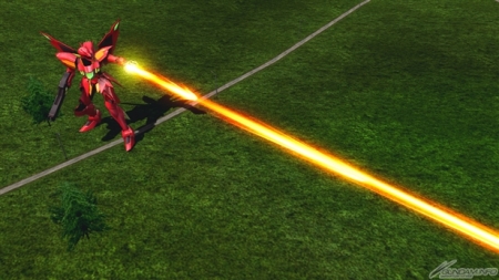 ▲特殊射撃武装「ビームバスター」では、照射ビームを放つ。