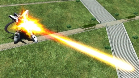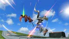 ▲メイン射撃武装では「ビームサブマシンガン」からビームを発射。