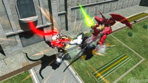 ▲特殊射撃武装「ヒートショーテル【投擲】」では、ヒートショーテルを2本同時に投擲して当たった敵をスタンさせる。
