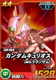 同機を倒した際に引くことができるチャンスガシャSには「★4 フリーダムガンダム」、「★4 ガンダム試作一号機フルバーニアン」、「★4 百式」、「★4 シャア専用ゲルググ」、「★4 ゲーマルク」などを獲得できるチャンスがあるほか、エースユニットガシャには「アレハンドロ搭乗アルヴァトーレ」に対し3倍の攻撃力を発揮する「★2 ガンダムキュリオス(MS/トランザム)」が追加される。