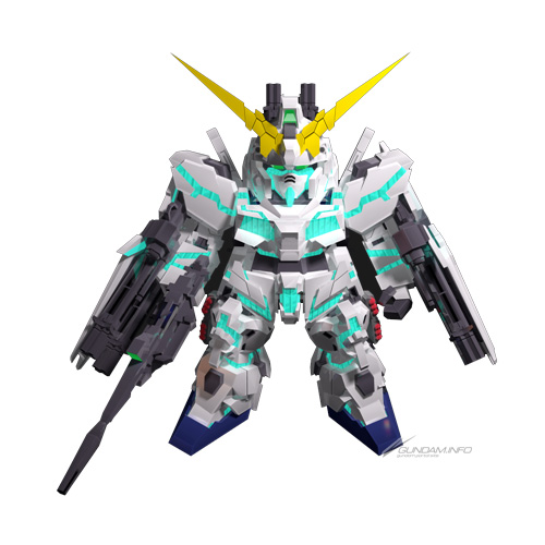 『機動戦士ガンダムUC』に登場する、地球連邦軍がアナハイム・エレクトロニクス社とともに極秘で進めていた「UC計画」の元で開発された試作MS。本機はネェル・アーガマに残存する装備を可能な限り搭載した「ユニコーンガンダム」の決戦仕様で、全身に追加装備された武器はデストロイモードに移行した際の可動を阻害することがないように装着されている。