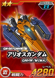 【右】「アルケーガンダム」に対し6倍の攻撃力を発揮する「★2 アリオスガンダムGNHW/M(MA)」