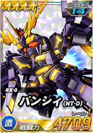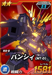 ※「★2 バンシィ(NT-D)」と同一ユニットを強化合成に使用し、強化パーツのLvを上げると「バナージ搭乗ユニコーンガンダム(NT-D)」への攻撃力倍率が「100%」上昇します。