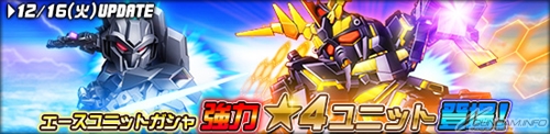 さらに、エースユニットガシャに「★4 バンシィ(NT-D)」など強力なユニットが登場するほか、新ワールド「機動戦士Ζガンダム(後編)」が追加された。また、「11連エースガシャ限定!ハロGETキャンペーン」と「ユニット合成EXPアップイベント」も同時にスタートした。