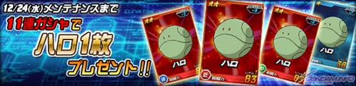 本日12月16日(火)より、「11連エースガシャ限定!ハロGETキャンペーン!」と「ユニット合成EXPアップイベント」が同時にスタートした。
