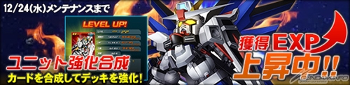 キャンペーン期間中は、ユニット強化合成を行ったときに取得できるEXPが通常時よりもアップする。