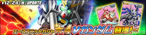 エースユニットガシャに、「★4 νガンダム」、「★3 Hi-νガンダム」、「★3 ΖプラスA1型試作機」が登場した。「★4 νガンダム」は強化パーツとして「サイコ・フレーム」を、「★3 Hi-νガンダム」はスペシャルウェポンとして「フィン・ファンネル」を搭載した強力なユニットとなっているので、ぜひとも手に入れよう。