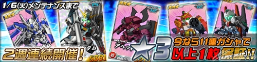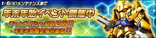 さらに、エースユニットガシャには「★4 νガンダム」など、プラチナパイロットガシャには「★3 アムロ・レイ」などが登場するほか、「年末年始イベント」など3つのキャンペーンとイベントも同時にスタートした。