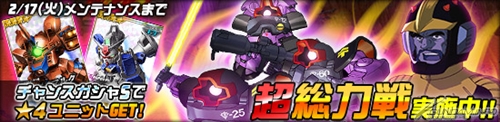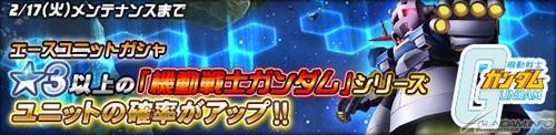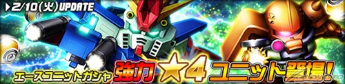 A four-star ZZ Gundam and more units have also been added to the Ace Unit Gasha, and the Mobile Suit Gundam series unit rate up promotion and Valentine's Day event have begun, bringing increased rates of female pilots to the Platinum Pilot Gasha and Pilot Gasha.