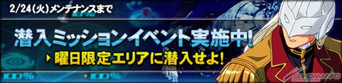 「潜入ミッションイベント」では、曜日ごとに限定の潜入エリアが出現する。エリアには、初級、中級、上級の難易度があり、初級へ潜入すると中級が解放され、同様に中級に潜入すると上級が解放される。