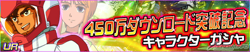 今回開催されるのは、3月21日(土)までの期間中、ゲームにログインすると毎日10枚のゴールドガシャ券がプレゼントされる「特別ログインボーナス」、2月26日(木)までの期間限定で出現する特別仕様の「450万ダウンロード突破記念ガシャ」、1個3,000GPで1人2個まで購入可能なセットアイテム「450万ダウンロード突破記念パック」の3つ。