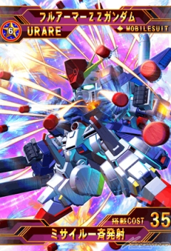 2月26日(木)13:59までの期間限定で登場する特別仕様のガシャ。MSガシャでは「UR フルアーマーΖΖガンダム / ミサイル一斉射撃」が、キャラクターガシャでは「UR ジュドー・アーシタ」が出現する。