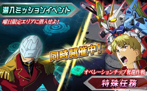 特殊任務「オペレーションチップ奪還作戦」では、期間限定のマップで登場する強力な敵を倒し、オペレーションチップを獲得することが目標。到達エリア報酬として「★2 パーフェクトストライクガンダム」、「★2 ムウ・ラ・フラガ」を、個人エリア報酬として「★3 ラクス・クライン」、「★3 アサギ・コードウェル」などの豪華報酬を獲得することができる。