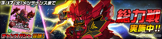 同機を倒した際に引くことができるチャンスガシャには「★3 ギラ・ドーガ(フル・フロンタル専用機)」を獲得できるチャンスがあるほか、エースユニットガシャには「シナンジュ」に対し3倍の攻撃力を発揮する「★2 バンシィ」が追加。