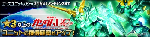 イベント期間中は、「エースユニットガシャ」及び「11連エースユニットガシャ」から出現する『機動戦士ガンダムUC』シリーズのユニットのうち、「★3」以上のユニットの排出確率がアップする。