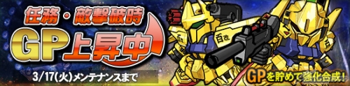 「敵撃破時獲得GPアップイベント」では、「任務」で敵ユニットを撃破した際に獲得できる「GP」がアップする。ユニット強化に欠かせない「GP」をより多く獲得し、ユニット強化に役立てよう。