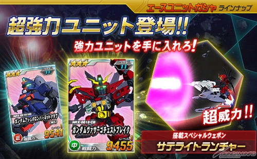 本日よりエースユニットガシャに、スペシャルウェポンとして「サテライトランチャー」を搭載する「★3 ガンダムヴァサーゴチェストブレイク」と「★3 ガンダムアシュタロンハーミットクラブ(MS)」が登場した。