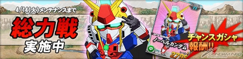 今回の総力戦では「ノーベルガンダム」が登場し、4月14日(火)までの期間中に任務を実行すると、まれに遭遇することがある。