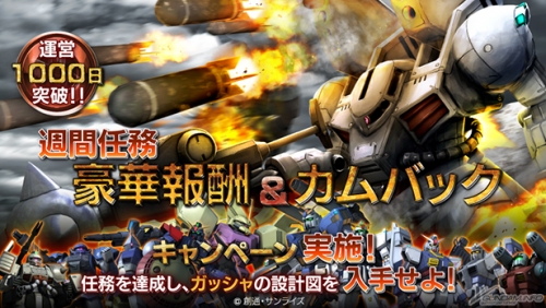 バンダイナムコエンターテインメントより好評配信中のPS3専用オンラインバトルアクションゲーム「機動戦士ガンダム バトルオペレーション」では、本日4月2日(木)より「週間任務 豪華報酬キャンペーン」と「カムバックキャンペーン」が同時にスタートした。