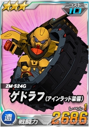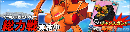 同機を倒した際に引くことができるチャンスガシャには「★3 ゲドラフ(アインラッド装備)」を獲得できるチャンスがあるほか、エースユニットガシャには「ドッゴーラ(橙)」に対し3倍の攻撃力を発揮する「★2 ガンブラスター」が追加される。