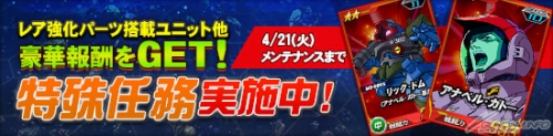 特殊任務「オペレーションチップ奪還作戦」では、期間限定のマップで登場する強力な敵を倒し、オペレーションチップを獲得することが目標。マップを進めることで、「★2 リック・ドム(アナベル・ガトー専用)」や「★2 アナベル・ガトー」など、豪華報酬を獲得することができる。