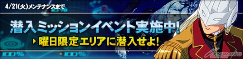 「潜入ミッションイベント」では、曜日ごとに限定の潜入エリアが出現する。エリアには、初級、中級、上級の難易度があり、初級へ潜入すると中級が解放され、同様に中級に潜入すると上級が解放される。