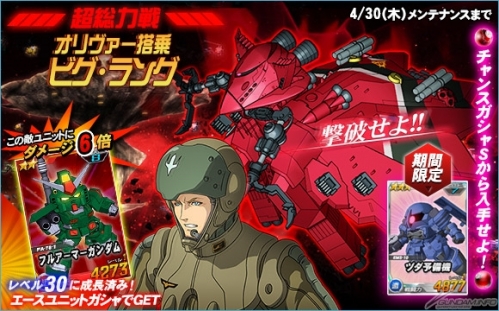 Bandai Namco Online's F2P browser game "SD Gundam Operations", available on Yahoo! Games, adds an Oliver's Big Rang super all-out battle on April 23rd.