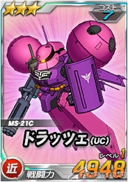 Defeating it earns you a try at a Chance Gasha S which could drop a three-star Reserve Zudah. Having trouble? Try your luck again with a two-star Full Armor Gundam from the Ace Unit Gasha and its 6x damage bonus!